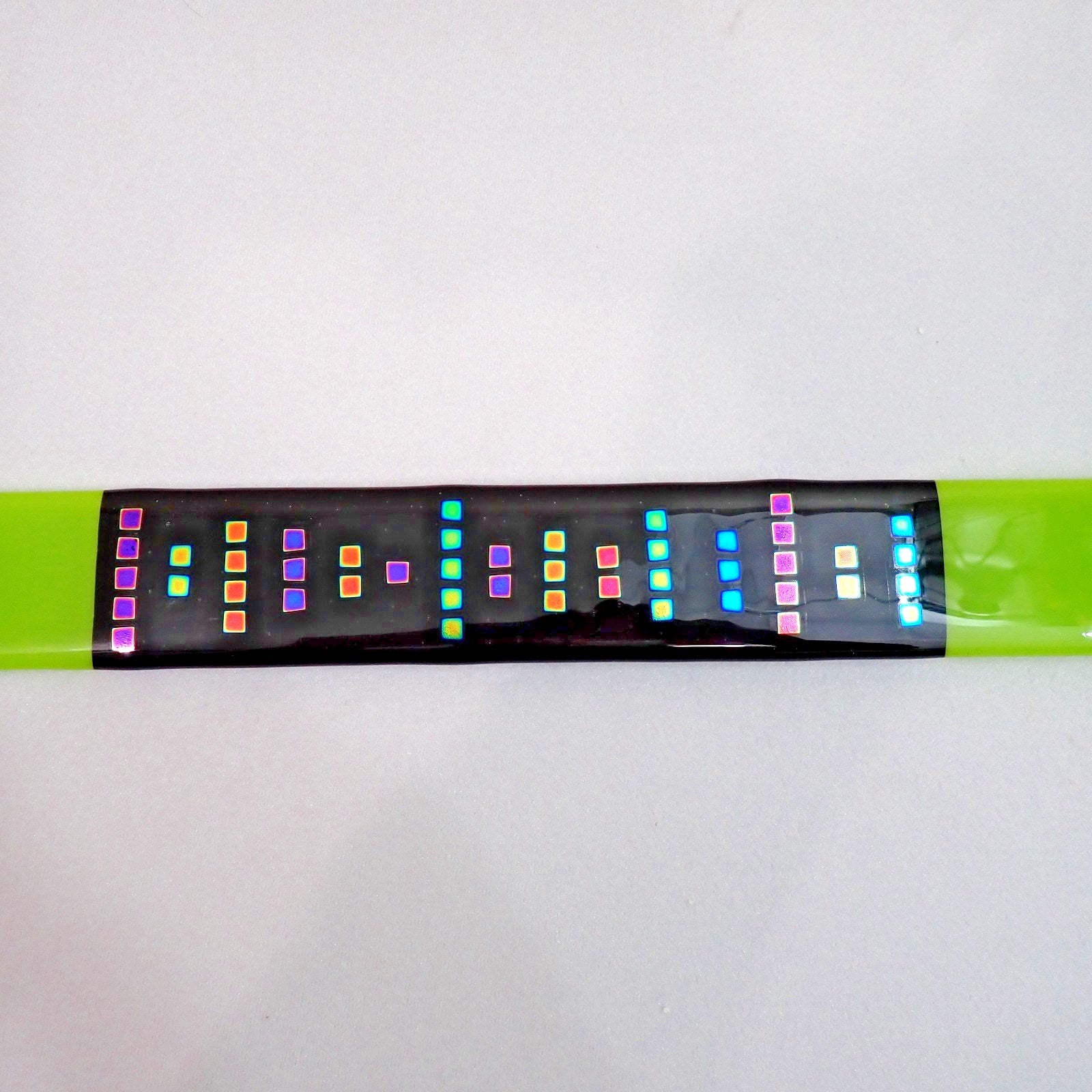 Laurie Burns, fused glass, Sedona art, geometric panel, Exposures Gallery, signed glass, wall sculpture, contemporary art, glass artwork, studio glass, modern glass, collectible art, colorful glass, abstract design, USA artist, Utah glass artist, one of a kind, handmade glass, modern home decor, unique wall art