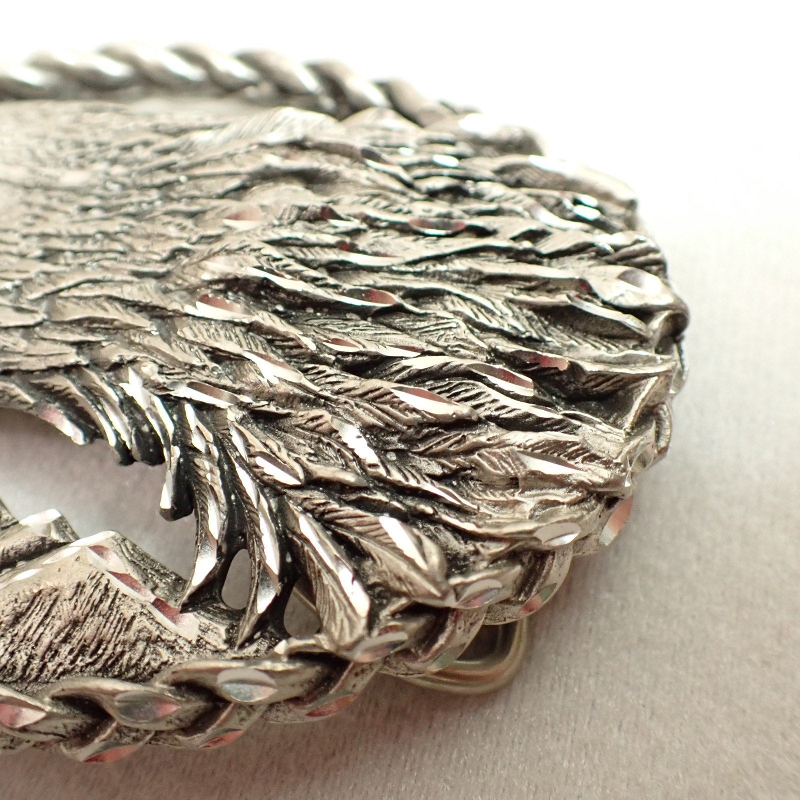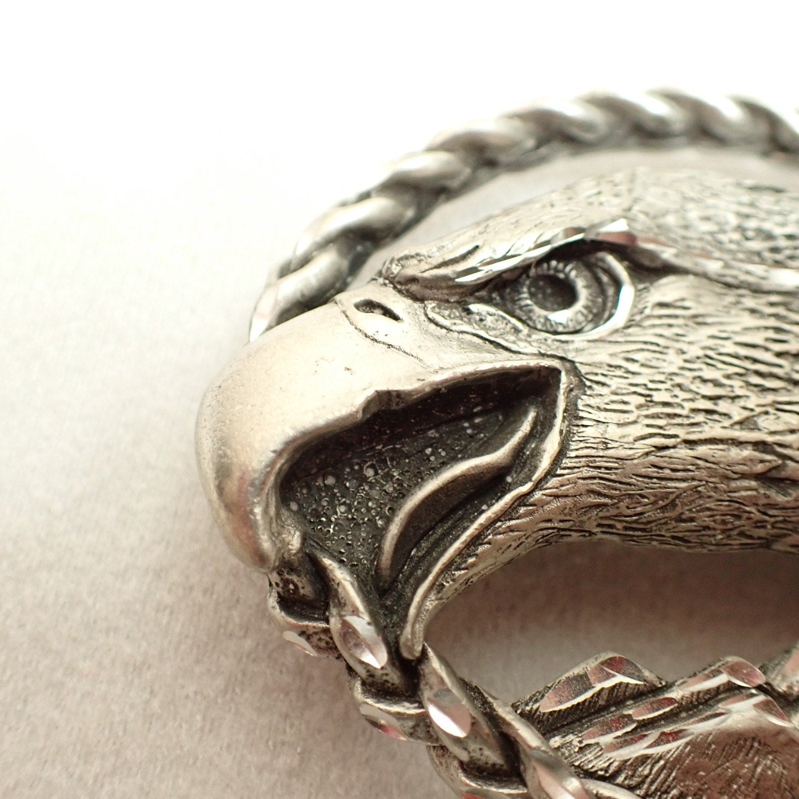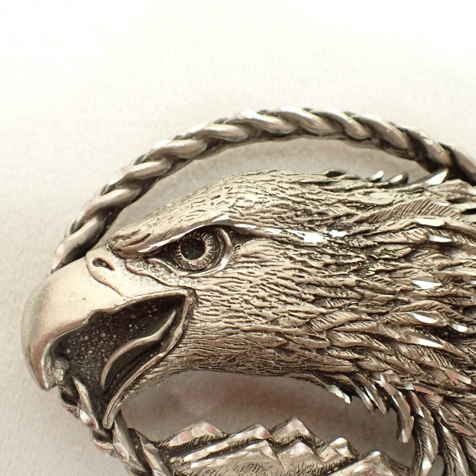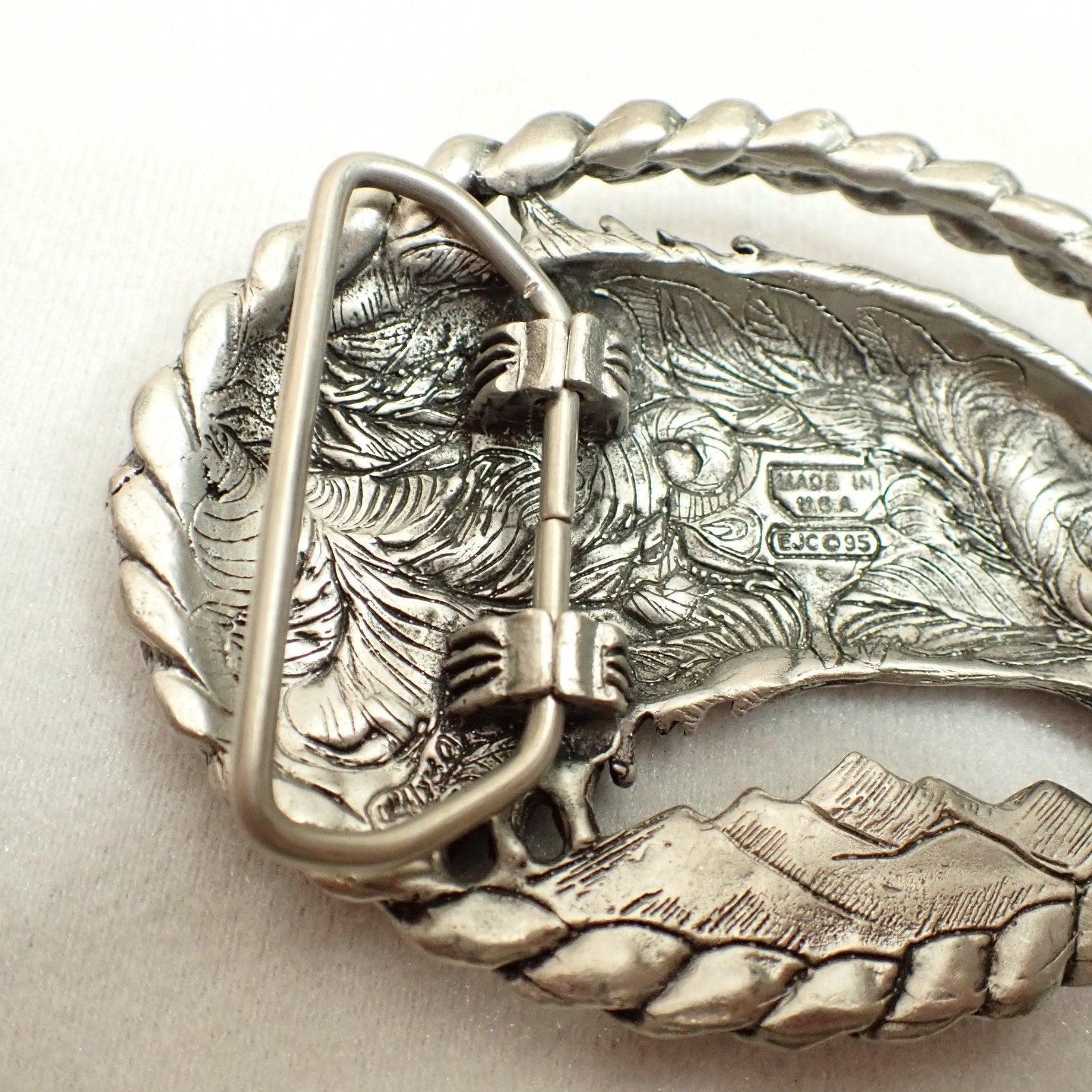 EJC eagle buckle, pewter belt buckle, USA made buckle, 1995 belt buckle, western belt, bald eagle, American eagle, bird buckle, mountain buckle, vintage belt, wildlife gift, E.J.C. 95, collector buckle, mens accessories, patriotic, rope edge buckle, biker buckle, retro belt buckle, outdoors, rare EJC buckle