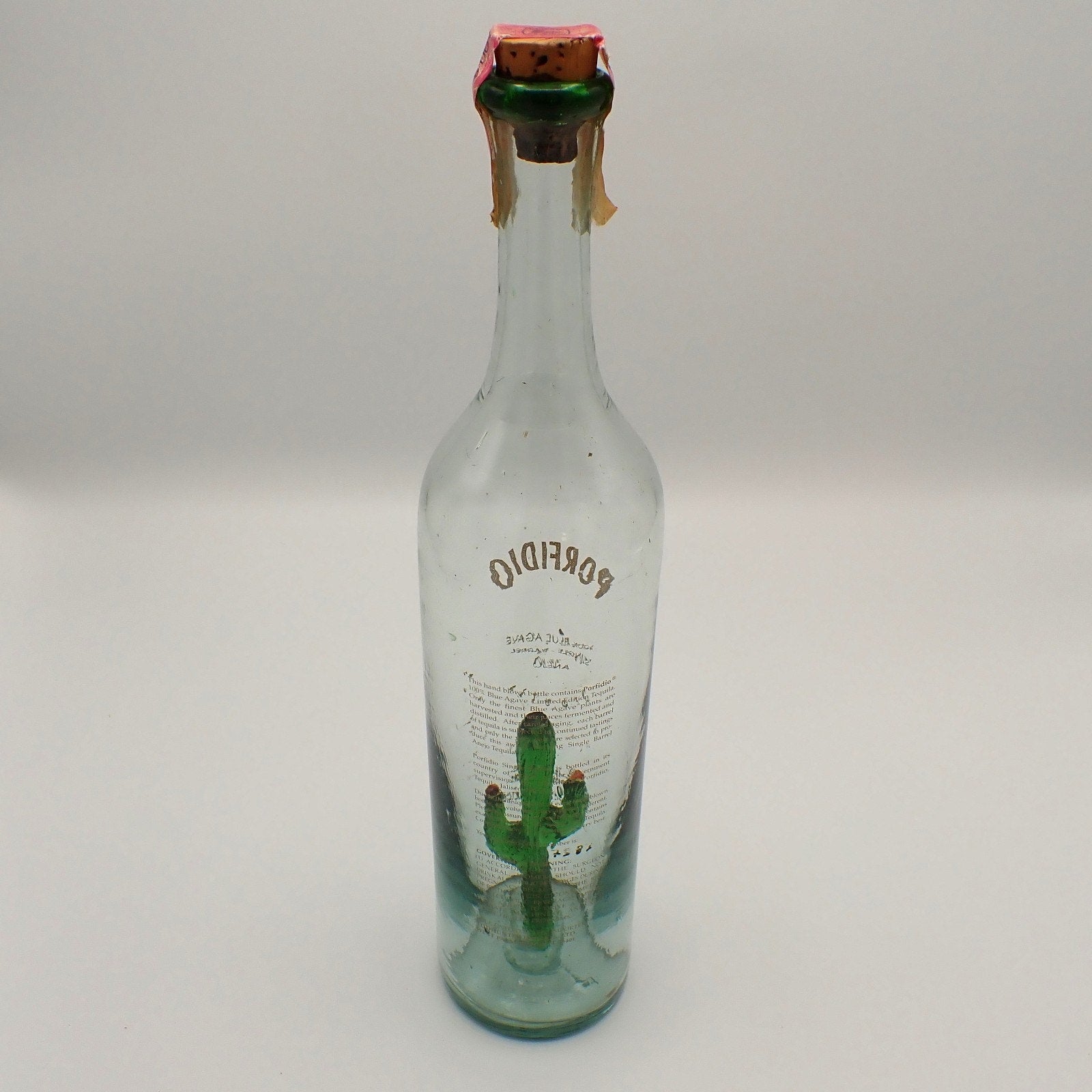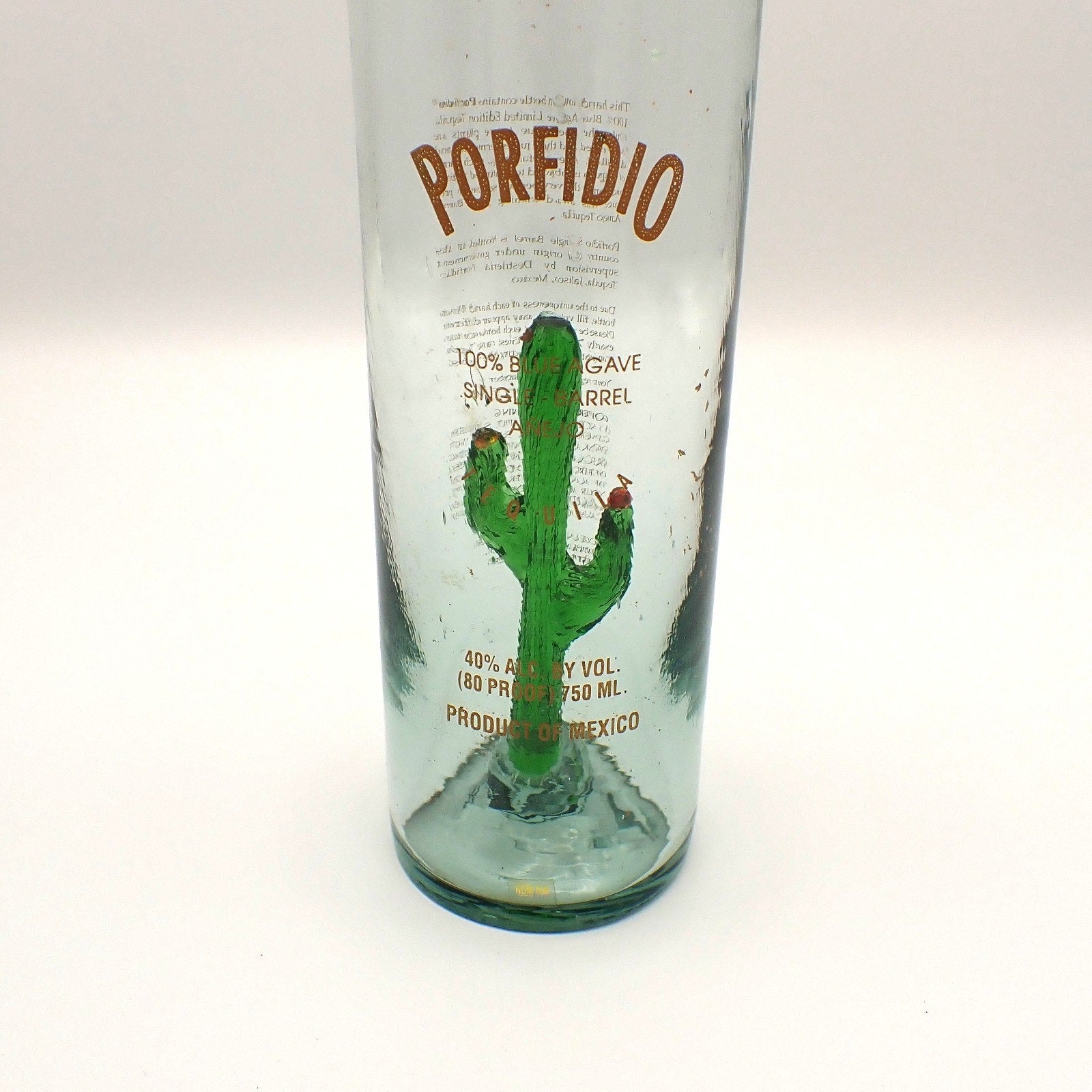 Porfidio bottle, tequila bottle, art glass bottle, cactus bottle, collector bottle, hand blown glass, green cactus art, Mexico tequila, vintage barware, bottle decor, Jalisco spirits, empty tequila, Porfidio Anejo, rare glass bottle, display bottle