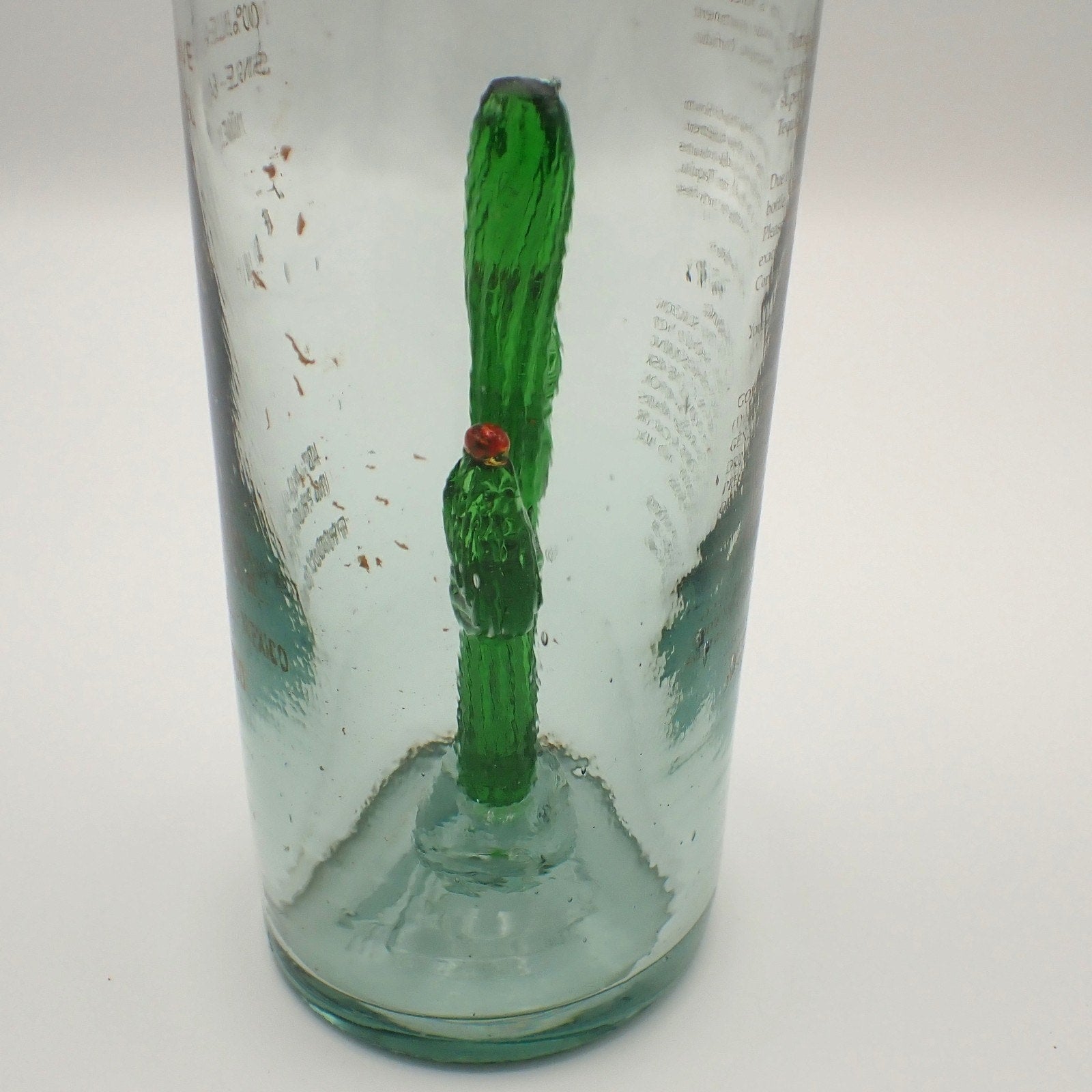 CONDITION NOTE: Used, but this 750ml bottle is in very good condition for its age, displaying only minor surface wear consistent with age and careful use. The vivid green cactus is intact; there are no cracks or chips in the glass, but there are some embedded imperfections in the bottle glass (see pictures). Does not include the original box, packaging, or any related documentation. Since this is a vintage piece, it does come with natural imperfections and discolorations that add to its character, and there may be some signs of wear that are typical for an item of its age. Please see all images of this listing to know what you are purchasing.