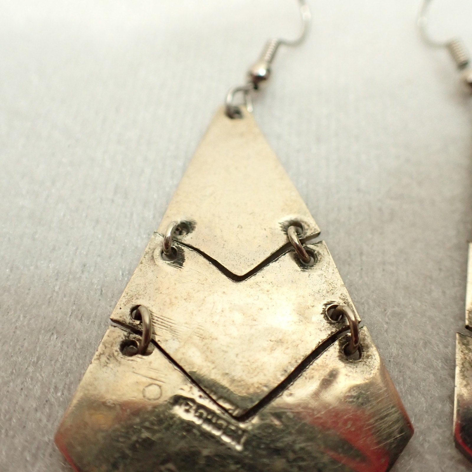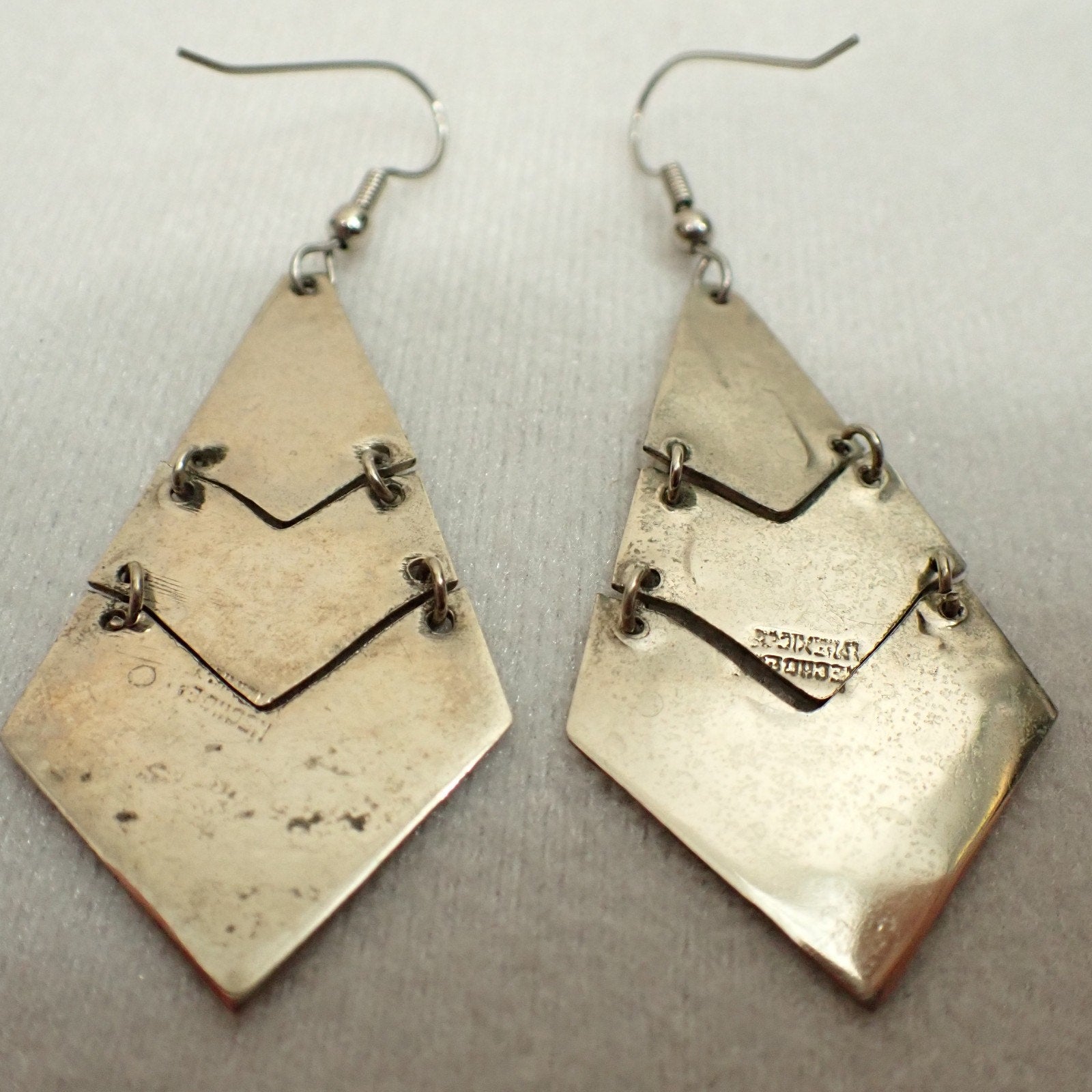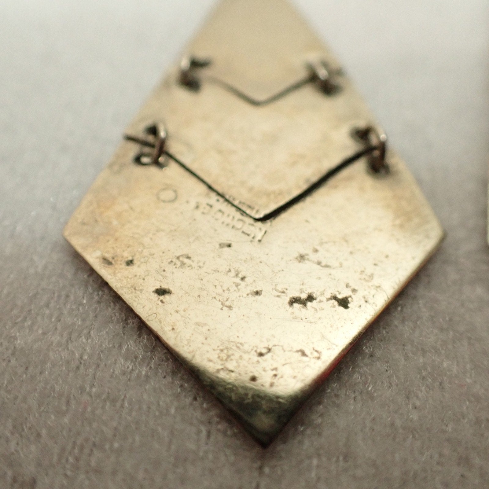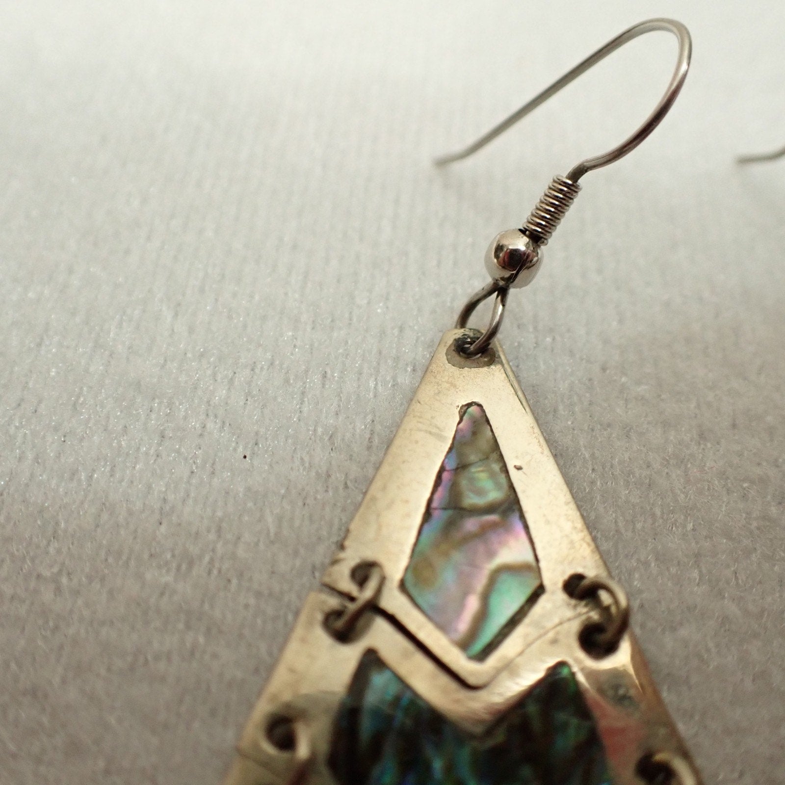 sombras, mexico, abalone, silver, alpaca, vintage, dangle, earrings, geometric, mosaic, shell, inlay, pierced, jewelry, chevron, statement, mid century, retro, artisan, handmade