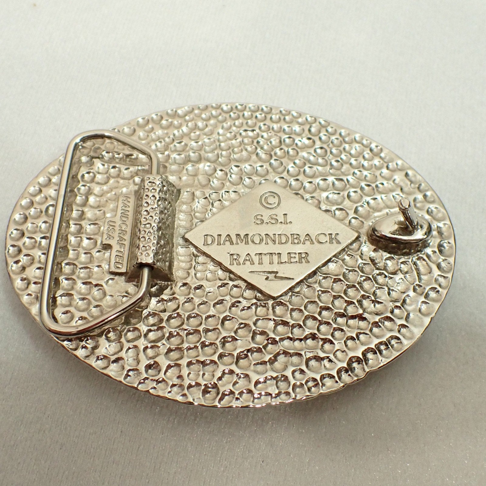 SSI (Silver Strike Inc.) became known in the 1970s and 1980s for crafting artisan belt buckles, emphasizing bold western and Native American themes. Their pieces are recognized for distinctive motifs like eagles and rattlesnakes, solid build, and were typically produced in the USA, catering to the American western wear market.