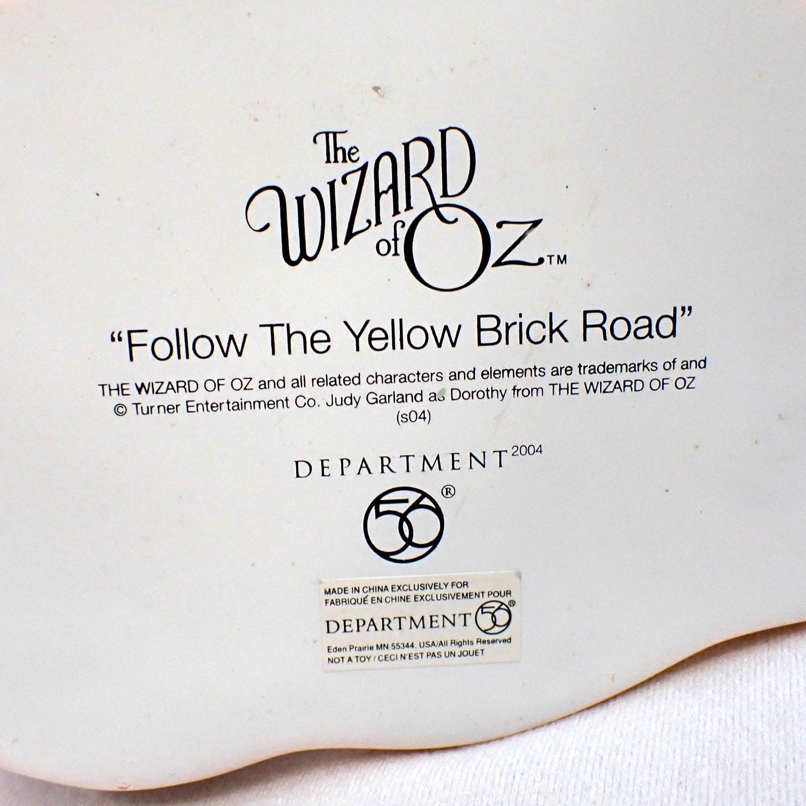 Enesco’s village master list records item 56.59360 “Follow the Yellow Brick Road” as introduced in 2004 with an original U.S. suggested retail price of about $45.00. The piece remained active in the catalog for several years, so an example in like new condition today is roughly a 20-year-old early-2000s collectible.