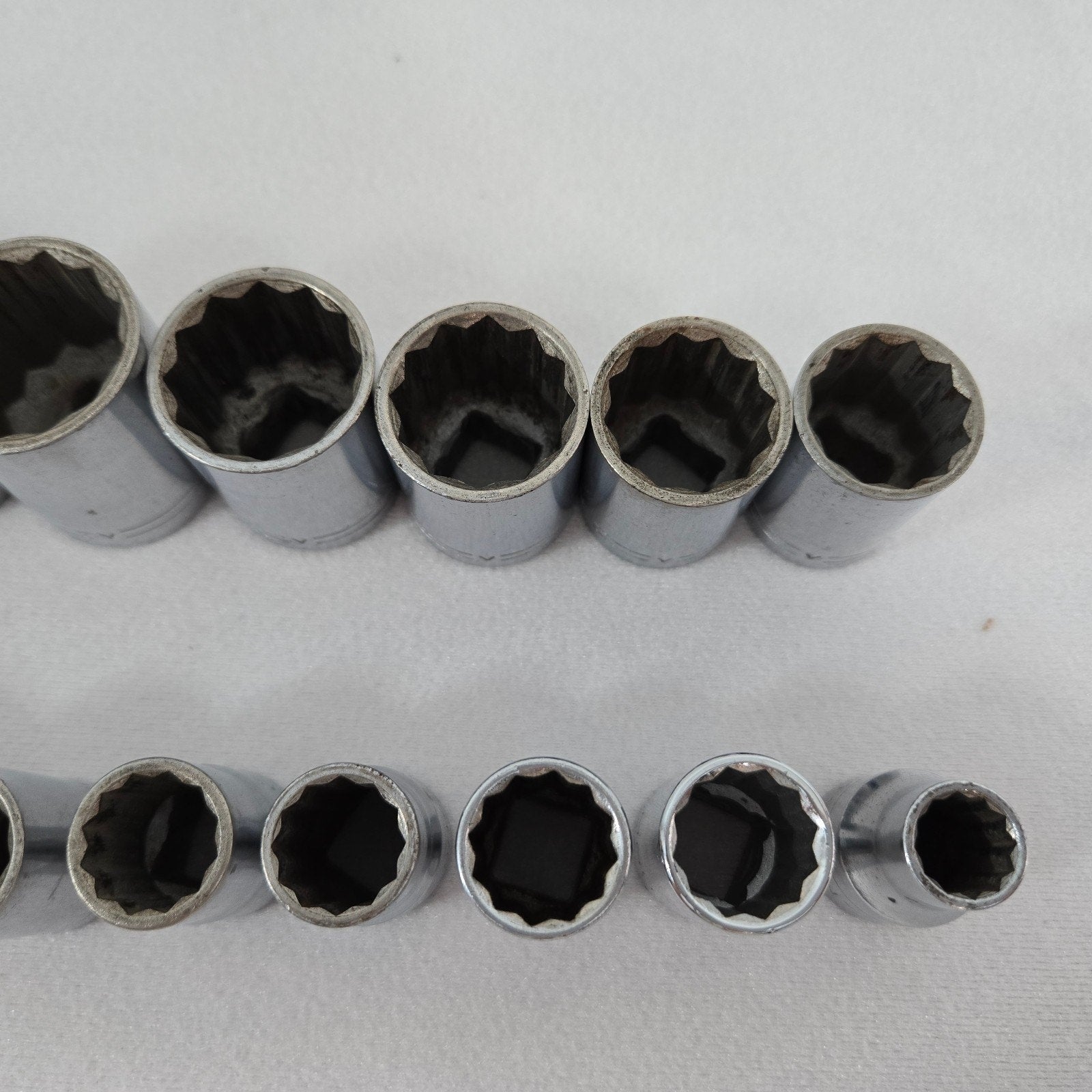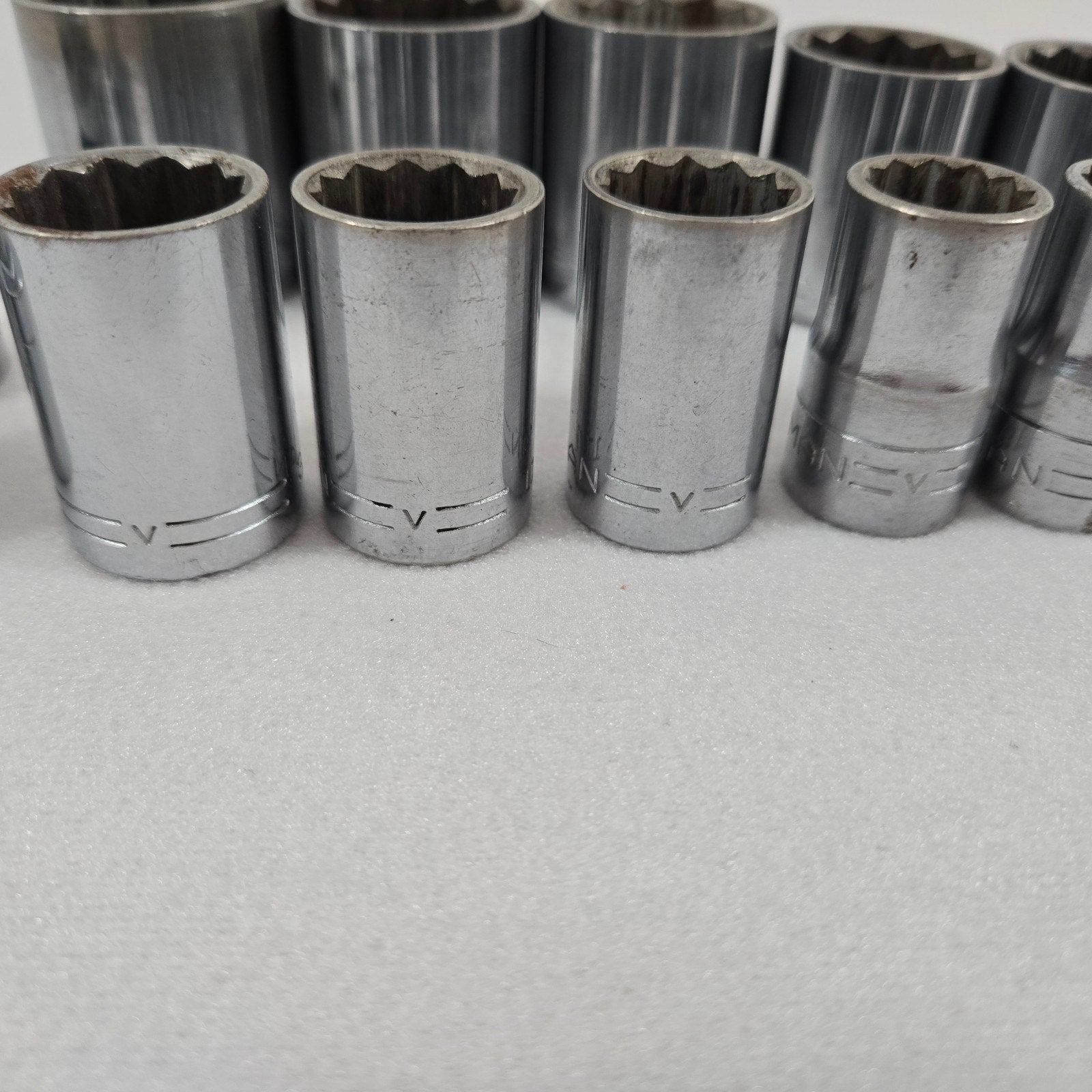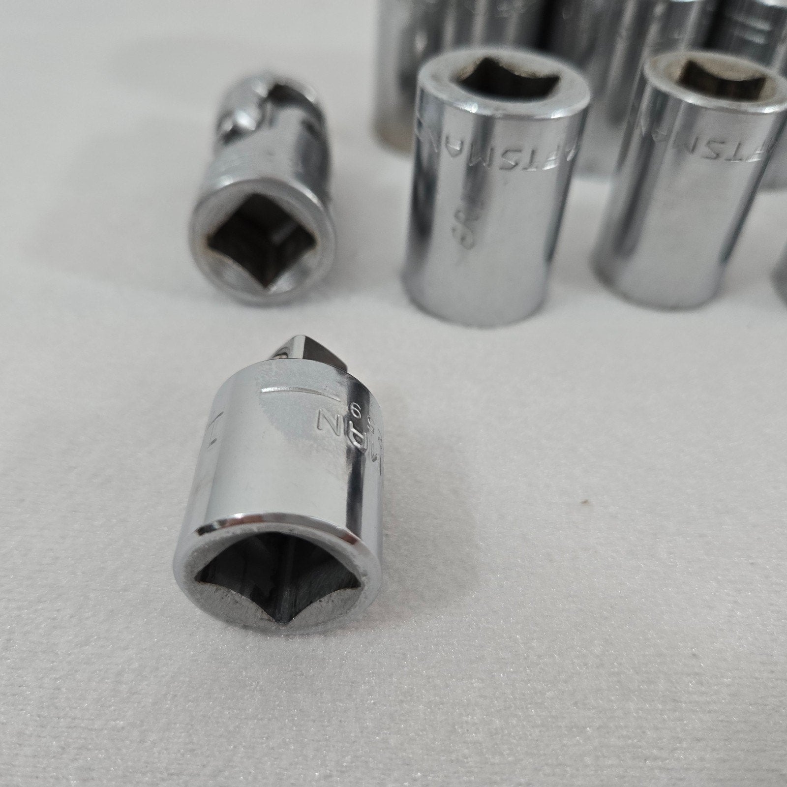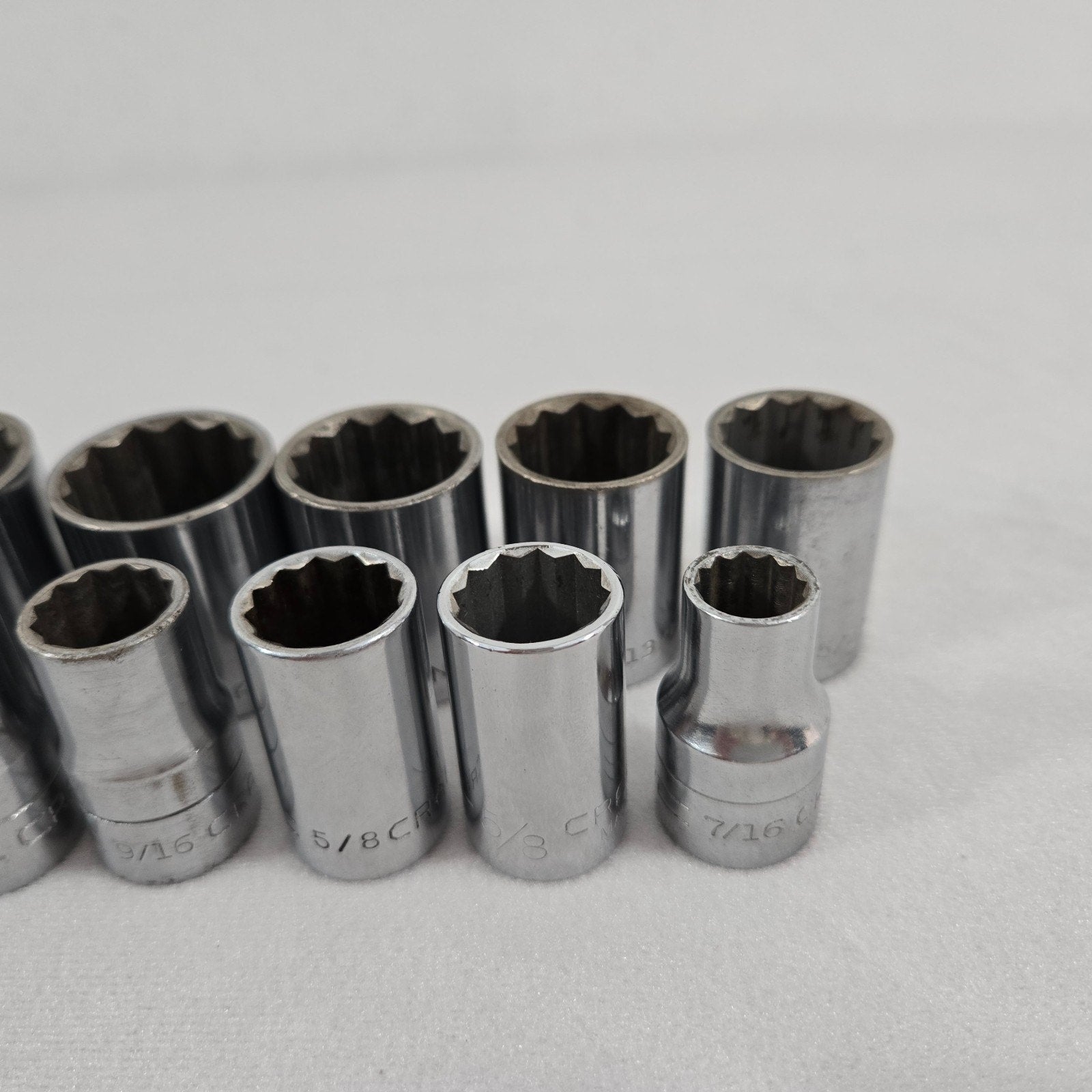 Vintage Craftsman 1/2" Drive V-Series 17 pc SAE 12pt Socket Set w/Universal Joint & 1/2" to 3/8" Drive Reducer - USA Made