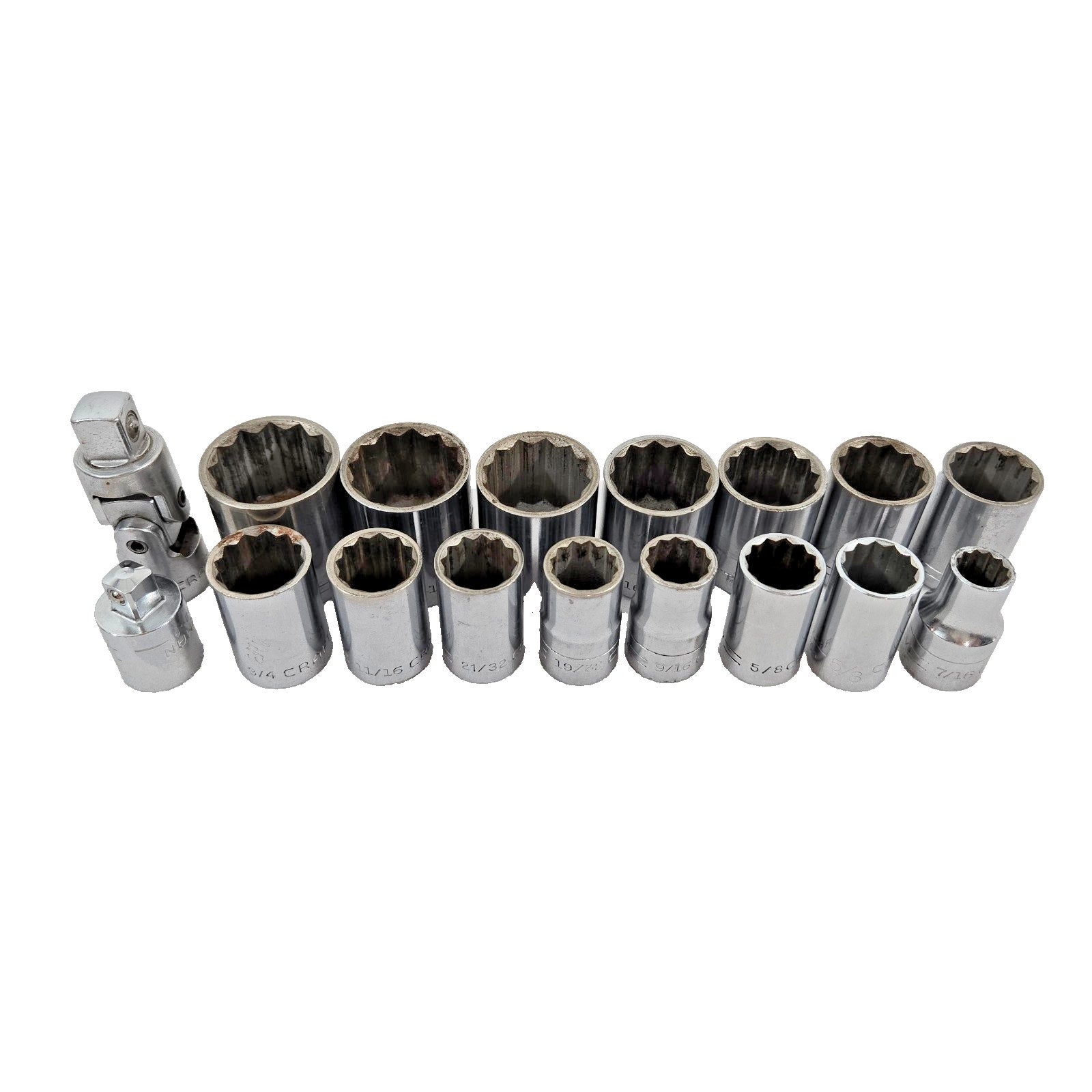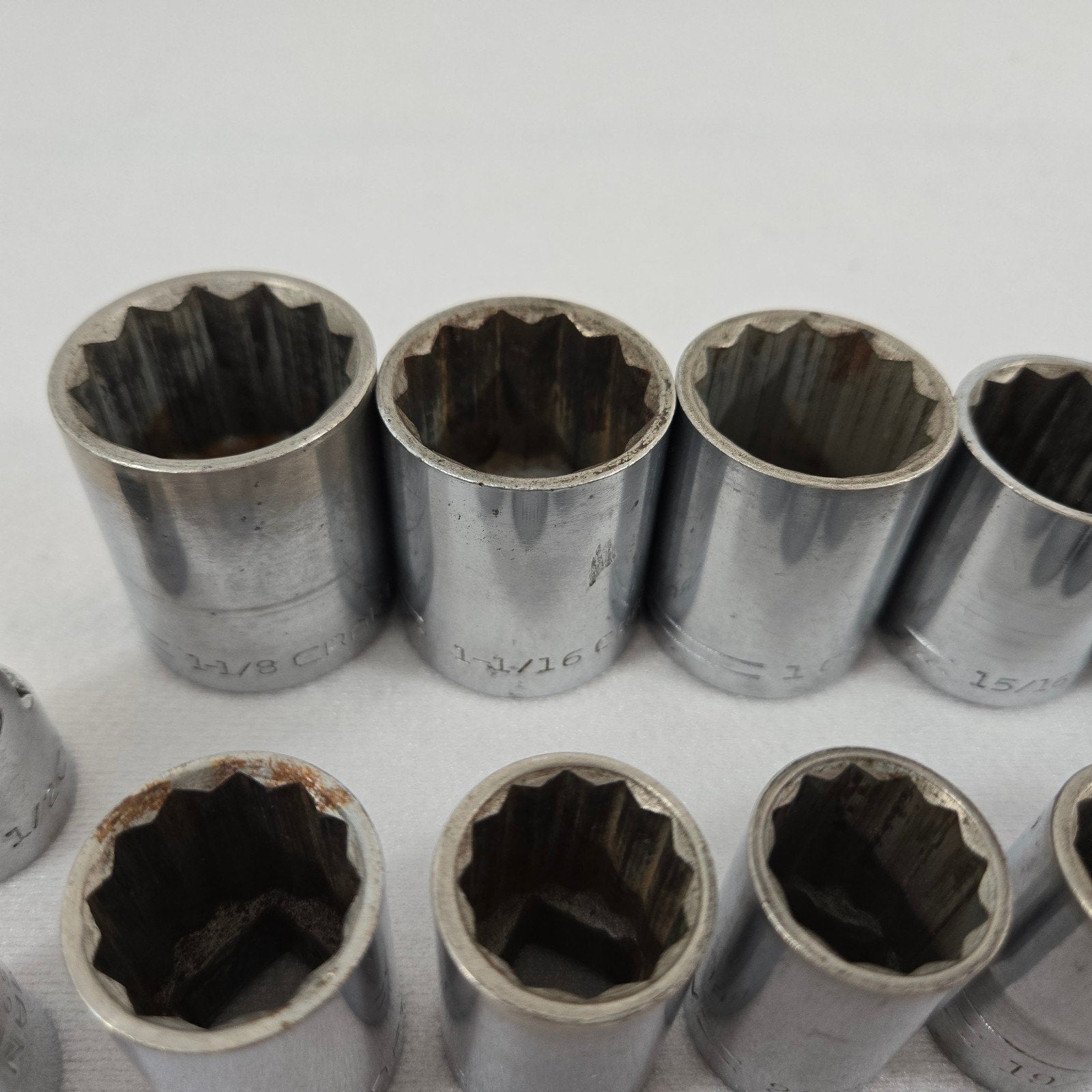 Craftsman 1/2" Drive V-Series SAE 12pt Socket Set 17 pc w/Univ Joint USA Vintage