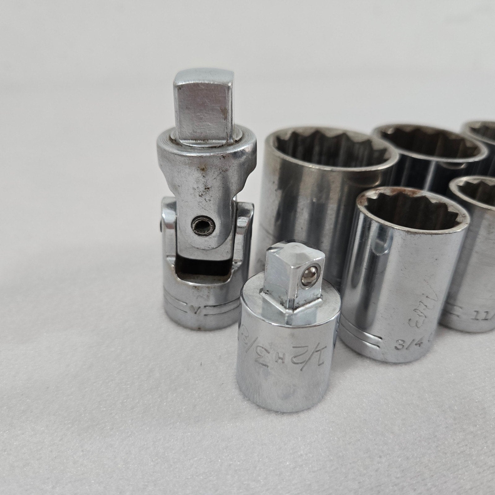 CONDITION NOTE: Used, and in good condition overall, but does include the engraved initials "ERV" from the original owner on only the 3/4" socket (see pictures). Sockets have some light surface scratches, scratches, nicks, and dirt from storage & use (see pictures)! Does not include the original box, or packing materials. See detailed high resolution (zoom-able) pictures to know what you are purchasing.