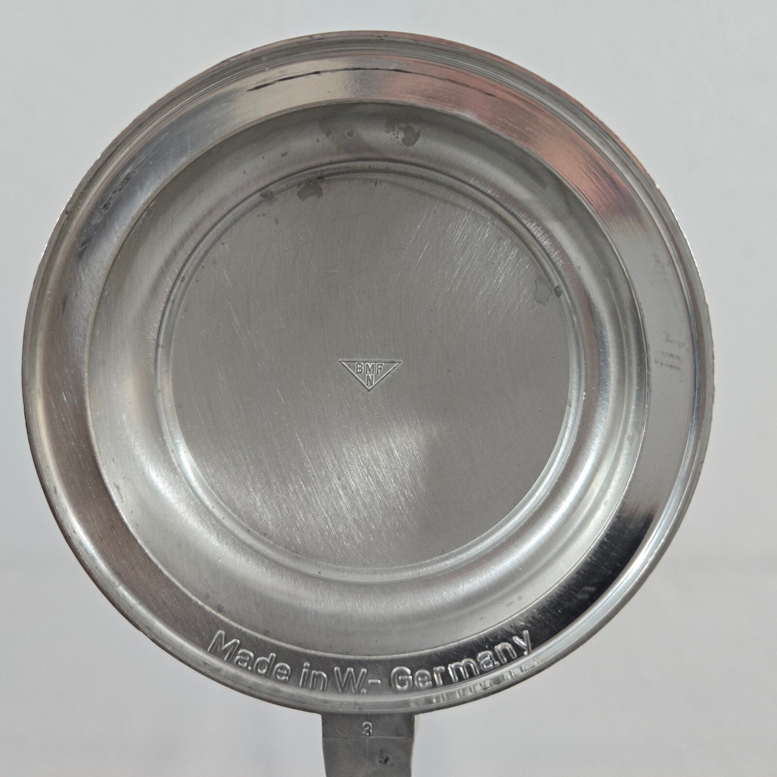 BMFN stands for Bayerische Metallwarenfabrik (Bavarian Hardware Factory), founded in Nuremberg, Germany, in 1902 by Hans Wagner and Willy Gundel. The company became a leading producer of metalware and household goods, including high-quality beer steins with glass and pewter components. BMFN was known for its craftsmanship and innovative designs. The company operated independently until it was sold in 1991, and its legacy is commemorated at the BMF Museum in Nuremberg.