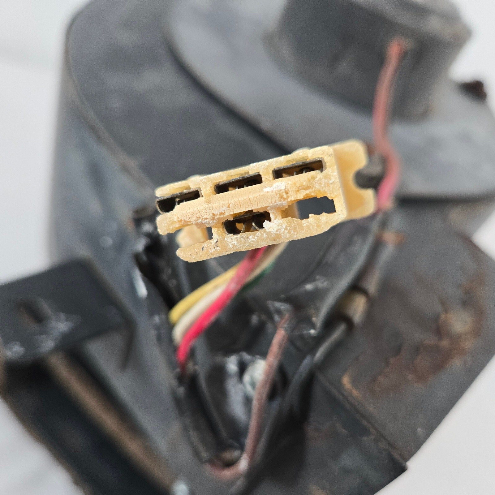 This heater fan housing was originally manufactured for the 1978 model year Datsun 280Z. The part is approximately 47 years old as of 2025.