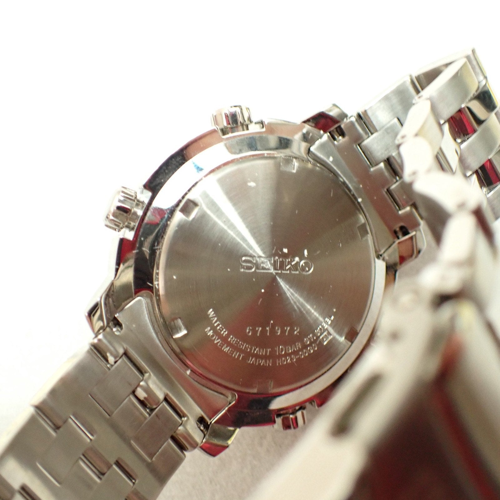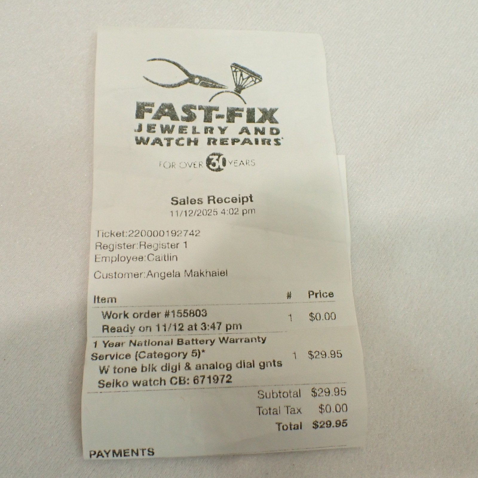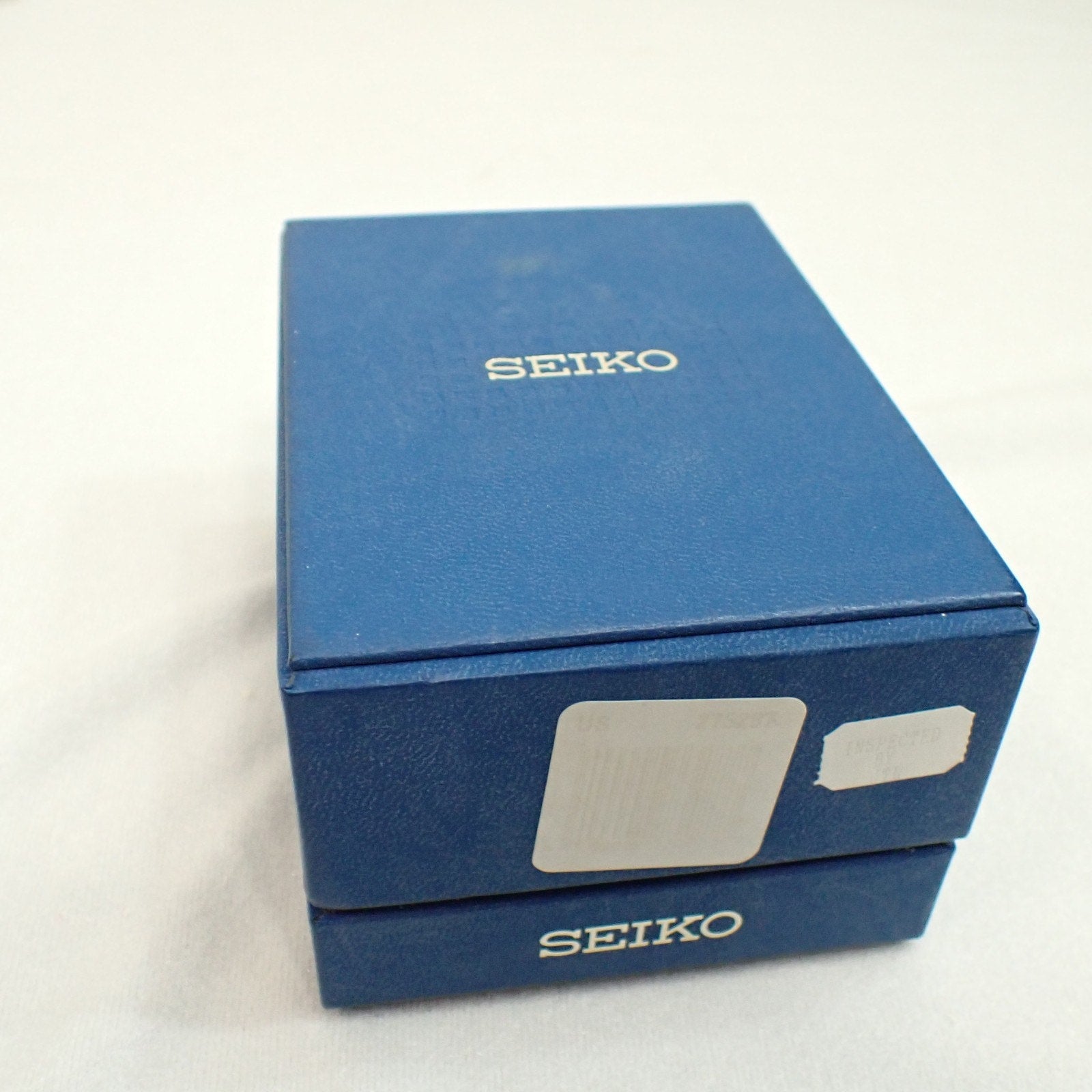 CONDITION NOTE: New, in its original box, and never used. Taken out of the box only to take pictures and have a new battery put in by a professional. Comes with its original box, outter sleeve (which has some edge wear from storage), packaging, and user manuals. The original battery was replaced on Nov 12, 2025. The white Seiko pillow that watch is on, is fraying a bit from age, with some white flacks coming off it it, so a new pillow was purchased, but the original Seiko pillow is included. See detailed (zoom-able) pictures to know what you are purchasing.