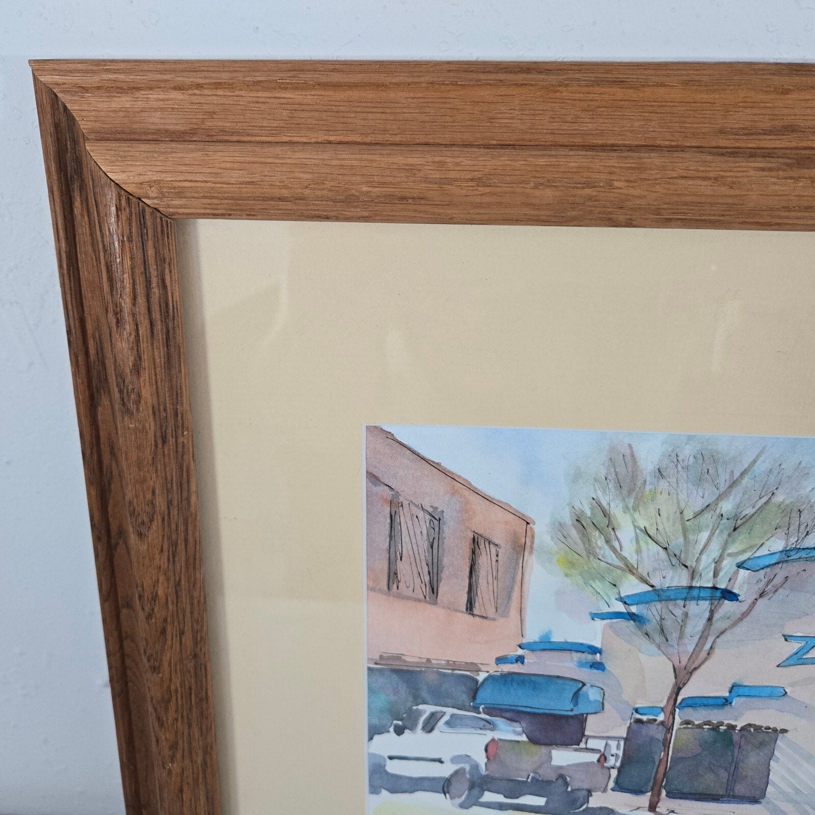 This vintage Southwestern watercolor painting depicts Zummy's Adobe Building with a pickup truck, created by the talented artist Kat Wiederhorn (or similar name -- see the signature in pictures). The piece showcases the artist's skillful use of watercolors to capture the essence of the Southwestern landscape. The vibrant colors and detailed composition make this painting a unique addition to any collection.